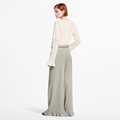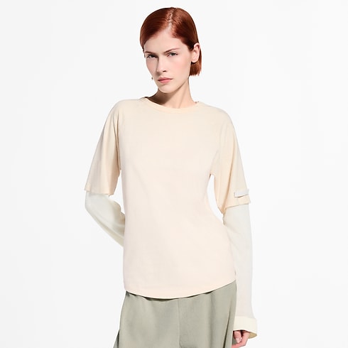 This T-shirt is casual and comfortable in fine cotton jersey spun in a loose straight shape. Tonal cotton-blend long sleeves create a laidback layered effect, which is underscored by fluid cuffs. The left shoulder is trimmed with this season’s slim leather Louis Vuitton Paris patch for an understated signature finish.