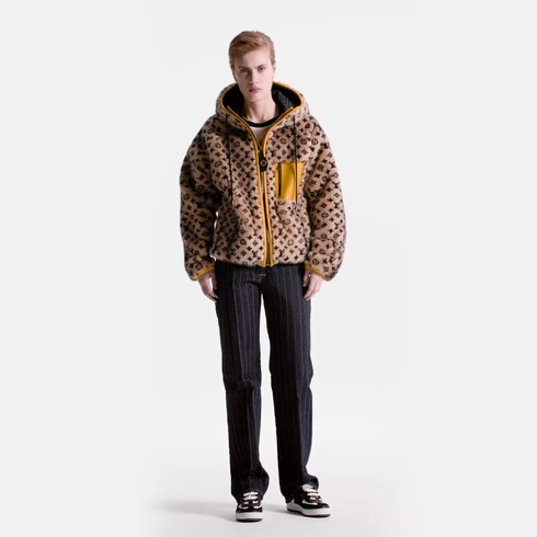 Chic e marcante, esta jaqueta oversized com zíper e capuz é confeccionada em vison aveludado com uma estampa sofisticada do icônico Monogram. O contraste fica por conta de um detalhe contemporâneo em couro amarelo-açafrão. O bolso com fecho no peito, os zíperes de bronze e o forro matelassado completam o modelo com um toque esportivo.