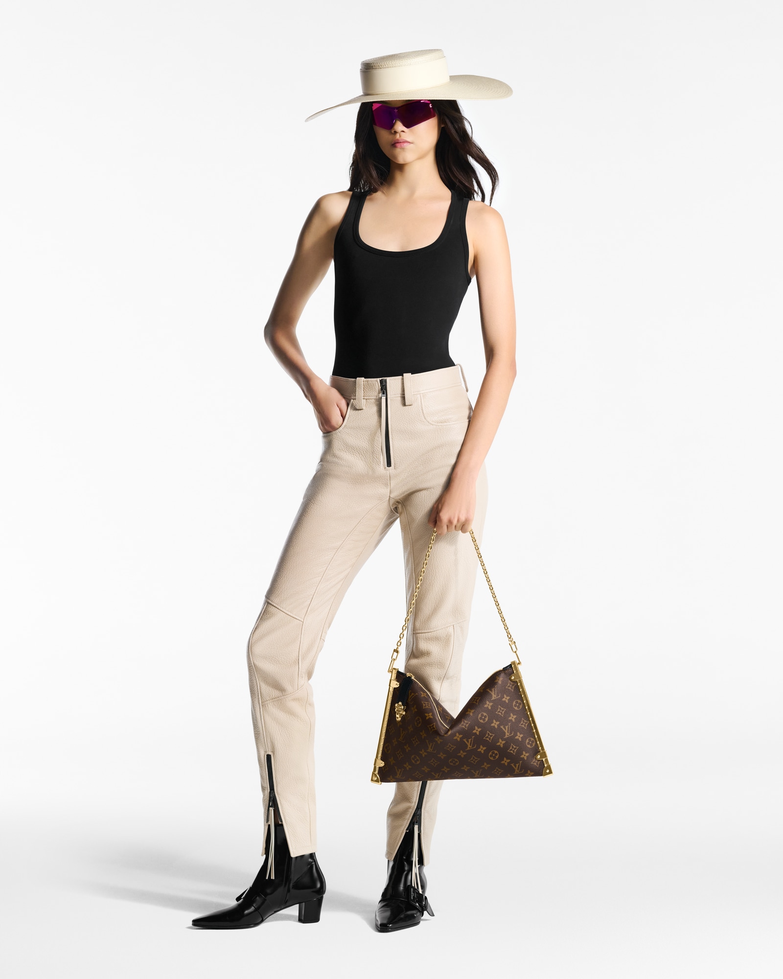 Grande favorita no desfile Fall-Winter 24, a bolsa Lucky Trunk apresenta uma silhueta desestruturada original. Confeccionada no icônico canvas Monogram da Maison, ela é inspirada em baús tradicionais, com armações metálicas e um clássico fecho dourado. Este modelo versátil pode ser carregado na mão ou no ombro.
