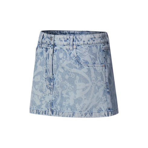 Assinaturas chic da estação elevam esta mini saia com uma sensação fresca e iluminada pelo sol. Ela é confeccionada em um corte reto atemporal, em jeans com estampa a laser que apresenta a lúdica padronagem LV Bloom desta estação. O bolso traseiro e a braguilha são fechados com botões LV Circle em tom prateado, enquanto o cós é finalizado com uma etiqueta de couro Louis Vuitton 1854.