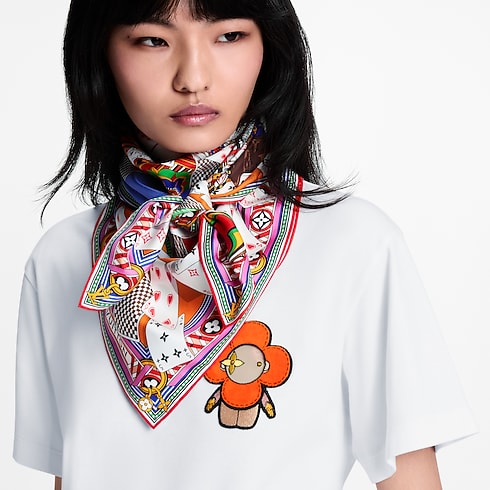 Styled in plush silk, the LV Card Game square expresses the carefree spirit of childhood and games. Its colorful print combines a castle of playing cards with evocations of travel: a Louis Vuitton trunk, hot air balloons, an antique automobile… Perfect for admirers of intricately designed silk squares, whether worn around the neck or displayed on a wall.