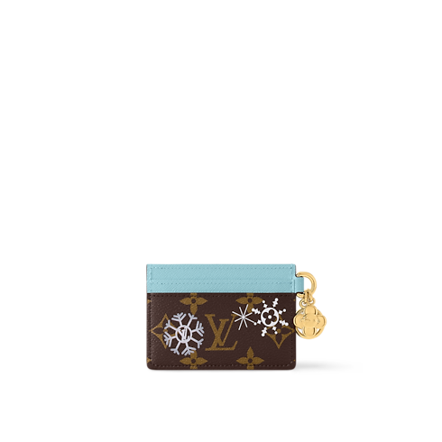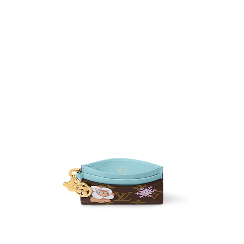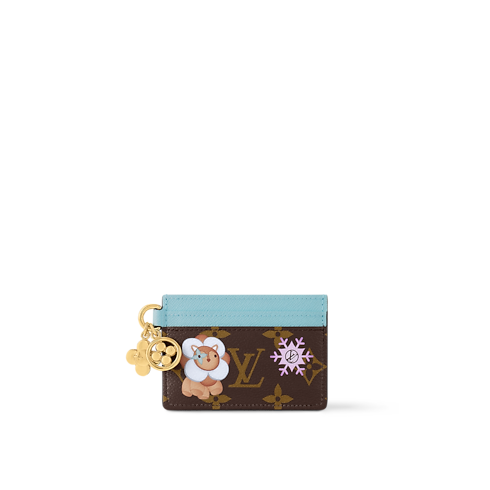 Esta versão festiva do porta-cartão LV Charms integra a coleção Snow Show. Confeccionado em canvas Monogram com acabamento em couro liso e decorado com ilustrações festivas, ele traz um símbolo da Maison, o cãozinho Petula, da mascote Vivienne. Este modelo compacto é finalizado com um charm no formato da Vivienne e uma flor LV.