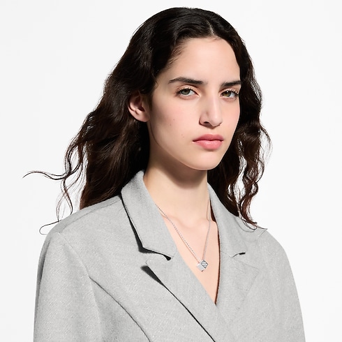 The playful elegance of the sterling silver LV Cube necklace echoes the spirit of Pateki, a puzzle game designed by Gaston Vuitton in 1932. Its cube-shaped centerpiece is adorned with engraving inspired by the iconic Damier canvas, complete with the Louis Vuitton Paris signature. An eye-catching, easy-to-wear necklace, ideal for everyday and more formal occasions.