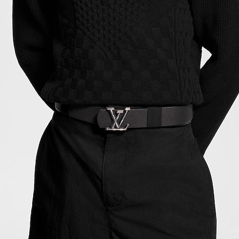 The all-black LV Dimension Damier 40mm reversible belt is a blend of attitude and elegance. The buckle, a contemporary interpretation of the House Initials, is interpreted in the checkered print, which creates a dynamic combination with both the matching Damier canvas side and solid leather reverse.