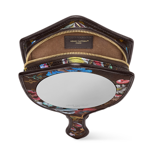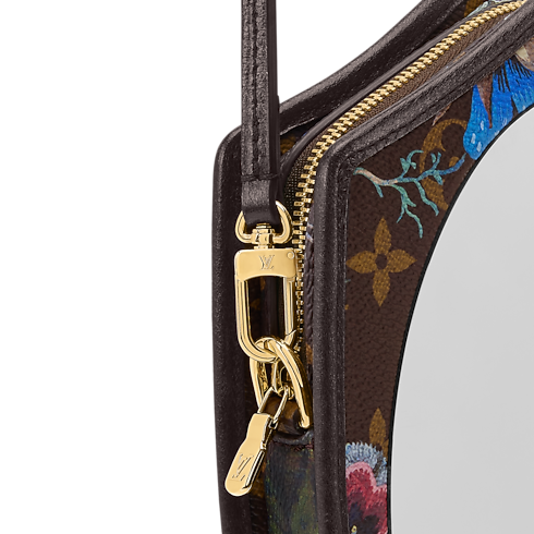The LV Mirror will lend a fairytale-inspired finish to any look it is styled with. This playful design is crafted from signature Monogram canvas patterned with vibrant florals that contrast the cowhide trims. It comes with a removable strap and closes with a gold-toned zipper to keep small essentials secure.