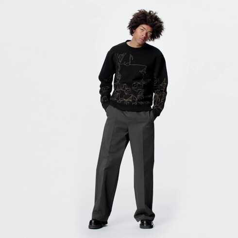Este elegante suéter de algodão felpudo preto é valorizado com o símbolo LV Music Line da coleção bordado de forma assimétrica com fio em tom contrastante na parte da frente. A costura exclusiva em forma de V nos ombros oferece maior conforto e ventilação, enquanto uma etiqueta invertida nas costas traz uma assinatura final.