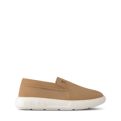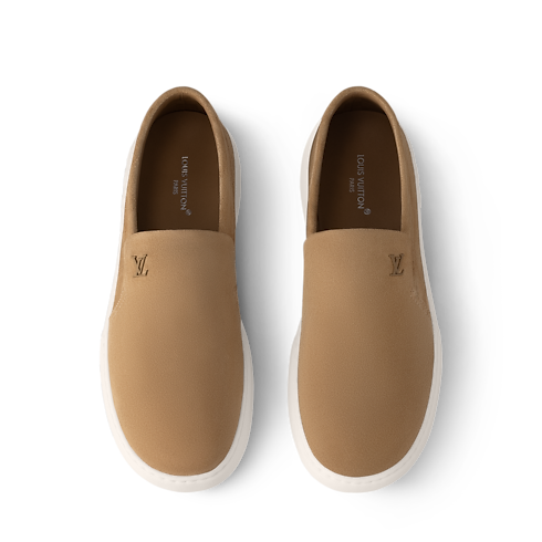 O loafer LV Pacific em suede de vitelo tem um estilo descontraído que se destaca por seu solado emborrachado espesso e extremamente leve. O cabedal macio é discretamente assinado com um acessório LV Initials em tom sobre tom, enquanto o solado é decorado com três Flores do Monogram. Este modelo slip-on é extremamente confortável de usar.