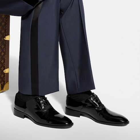 O richelieu LV Premiere em couro de vitelo envernizado evoca o espírito refinado dos cavalheiros ingleses, reinterpretado pelo diretor-criativo da linha masculina Pharrell Williams. As linhas elegantes são complementadas por detalhes sofisticados, incluindo a assinatura bordada nos cadarços. Finalizado com um salto ligeiramente mais alto que o habitual e um solado de couro decorado com a emblemática pérola de Pharrell Williams.