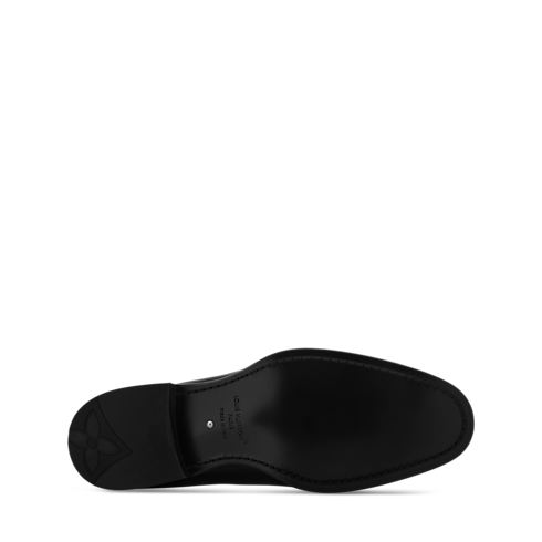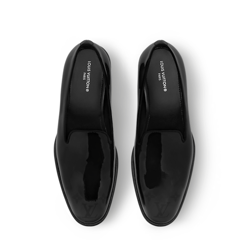 O slipper LV Premiere é confeccionado em couro de vitelo envernizado e lustroso, complementando suas linhas elegantes e sofisticadas. Com um salto ligeiramente mais alto do que o habitual, este modelo revisita a silhueta refinada dos cavalheiros ingleses. A biqueira traz uma padronagem Monogram em degradê, enquanto o solado de couro vem com uma pérola decorativa, assinatura do diretor-criativo da linha masculina Pharrell Williams.