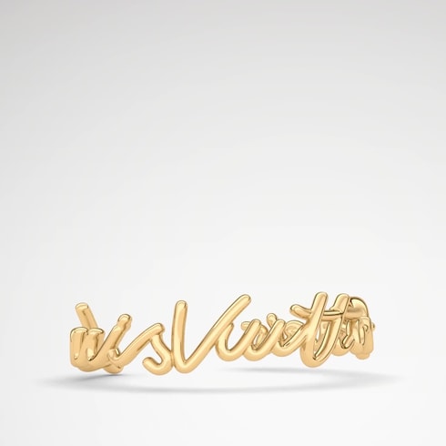 Sofisticada e casual, a pulseira LV Script inspira-se em uma assinatura Louis Vuitton manuscrita, vista pela primeira vez no desfile da coleção Spring-Summer 2025. Seu design criativo ganha a forma de um aro aberto com o nome da Maison em metal dourado brilhante. Esta pulseira refinada e confortável é fácil de usar no dia a dia e em ocasiões especiais.