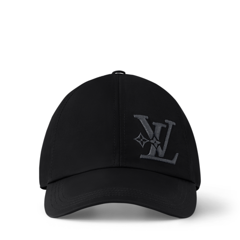 O boné LV Smash é uma versão monocromática deste acessório clássico, com a assinatura LV Smash bordada em um tom mais claro. Confeccionado em tecido impermeável preto, ele tem seis gomos e tira posterior ajustável, oferecendo elegância independentemente das condições climáticas.