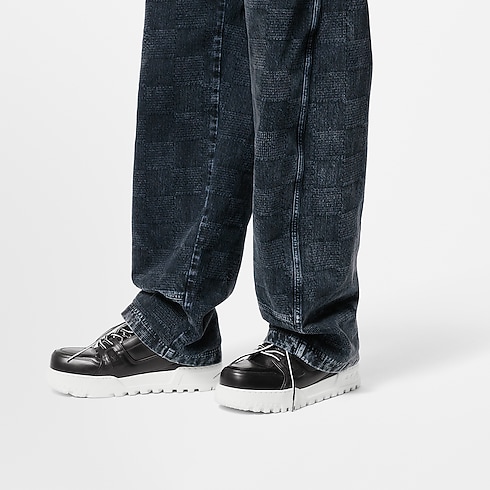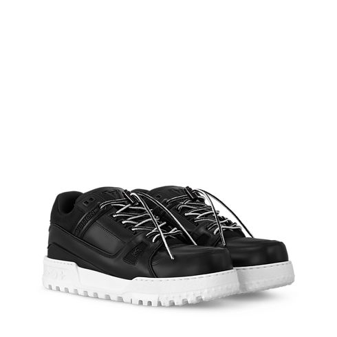 O tênis LV Trainer Maxi reinterpreta o icônico modelo LV Trainer com um design oversized e vanguardista. Esta versão é confeccionada em couro de vitelo com LV Initials em borracha e cadarços em tecido tecnológico com reguladores. O solado emborrachado e espesso, com Flores do Monogram, vem em branco contrastante, criando um efeito esportivo e retrô.