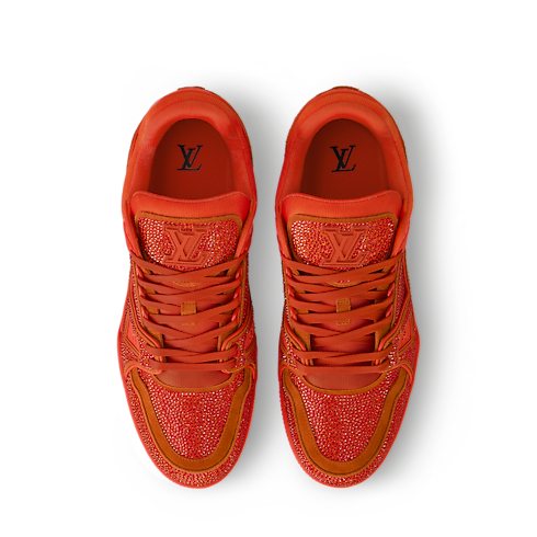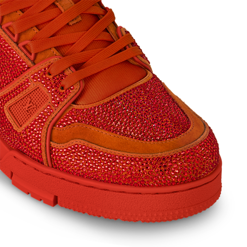Esta versão excepcional do tênis LV Trainer é coberta de cristais Swarovski™. Um ícone da coleção de sapatos da Louis Vuitton, esse modelo foi desenhado originalmente por Virgil Abloh, que se inspirou nos tênis de basquete vintage. O design é complementado por detalhes emborrachados, incluindo LV Initials e a assinatura Vuitton na lateral.