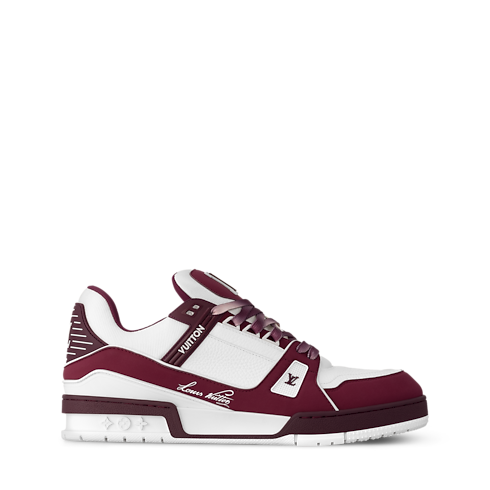 Esta versão do tênis LV Trainer combina os couros de vitelo granulado e Nubuck em dois tons de cores elegantes, destacando a construção elaborada do cabedal. A assinatura Louis Vuitton manuscrita de Virgil Abloh, criador do icônico modelo original, aparece na lateral. Inspirado nos tênis vintage de basquete, tem solado tecnológico em borracha bicolor.