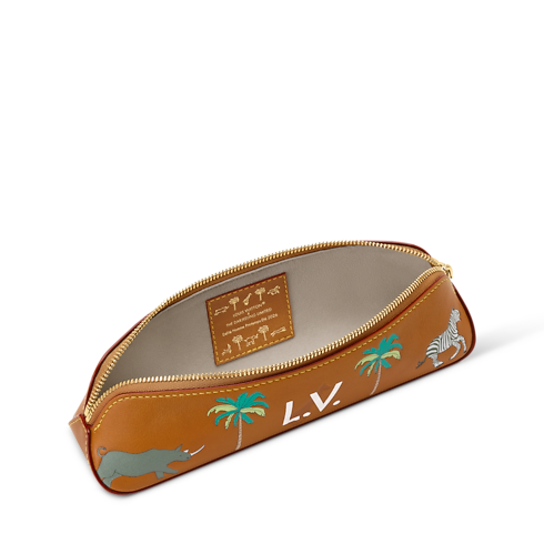 The Louis Vuitton x The Darjeeling Limited Elizabeth pencil pouch holds all the creative tools needed for jotting down creative notions. For the first time, the style is crafted in leather, and for the season's special collection, it is covered in the joyful print of animals and trees first created for the film's universe. Like the Wes Anderson movie, this piece is an ode to the art of travel and the kaleidoscopic sensibilities of India.