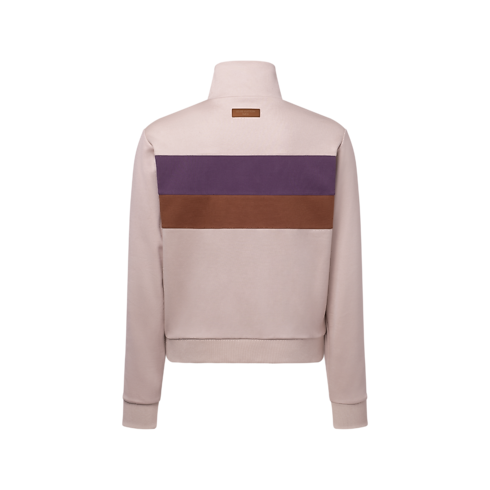 Uma interpretação sofisticada de uma silhueta casual, este elegante top esportivo bege é confeccionado em jersey dupla face de algodão, realçado por faixas contrastantes ao longo do torso e pela discreta inscrição Louis Vuitton Paris em dourado estampada no peito. No interior, a padronagem gráfica LV x The Darjeeling Limited da temporada adiciona um toque exclusivo, enquanto um icônico patch em couro finaliza a parte de trás.