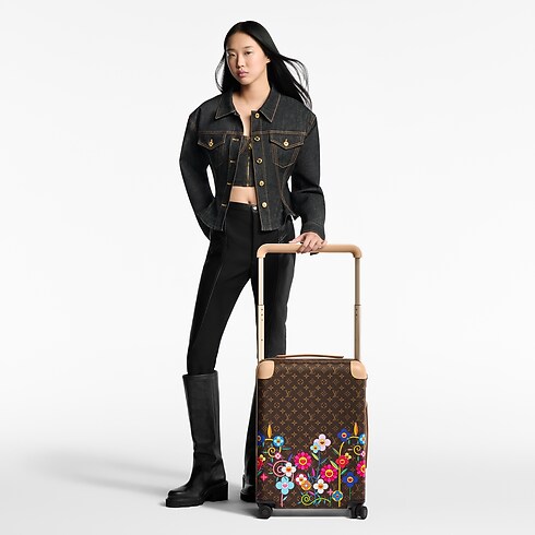 Esta mala com rodinhas Horizon 55 é confeccionada em canvas Monogram Garden, uma versão exclusiva do tradicional Monogram com Monogram Blossoms em tons vibrantes. As ferragens em tom champagne e os acabamentos em couro natural complementam o design sofisticado. Seu interior espaçoso, proporcionado pelo cabo posicionado externamente, é revestido em tecido fúcsia.