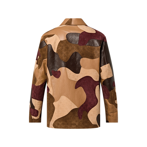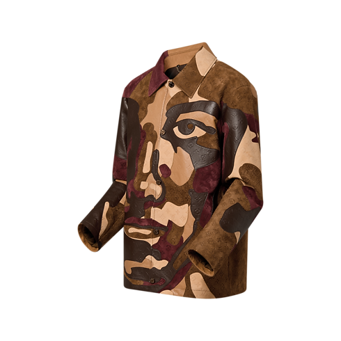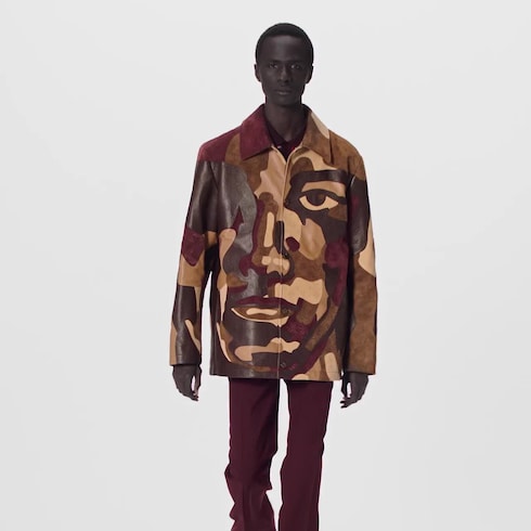 Esta jaqueta do desfile Fall-Winter 23 em couro e suede com corte de camisa utilitária é feita sob encomenda e apresenta uma combinação de cinco tipos de couro diferentes com Monogram em alto-relevo. Os recortes costurados à mão criam um patchwork que compõe um retrato. Esta peça exclusiva, com forro e um discreto matelassê, confere um toque gráfico a looks atemporais.