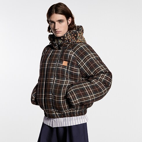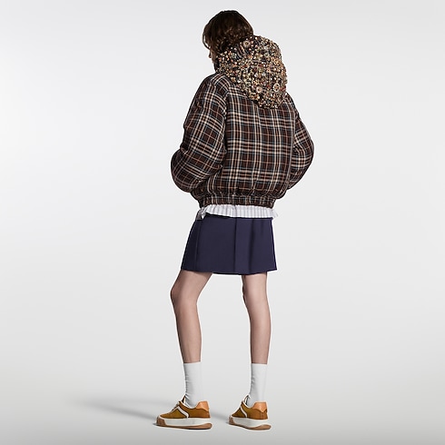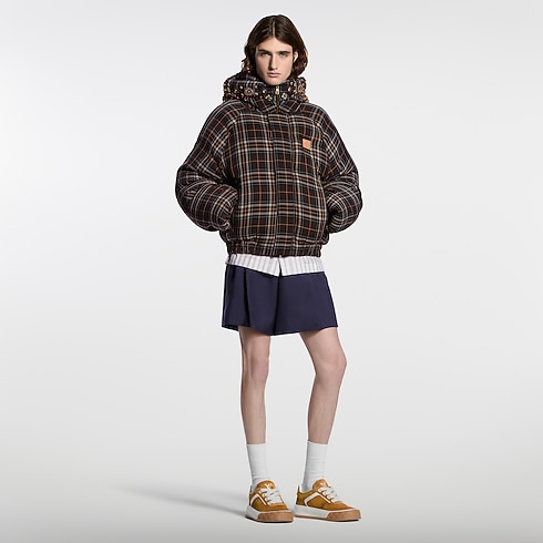 Esta jaqueta acolchoada é uma peça exclusiva, confeccionada sob encomenda, do desfile Spring-Summer 2026. Inspirada no elegante universo do montanhismo desta temporada, tem uma silhueta relaxada e envolvente, destacada por um xadrez em sofisticados tons de marrom, coroada por um capuz que traz milhares de cristais e contas meticulosamente bordados. Um patch de couro VVN colorido no peito arremata esta peça de destaque.