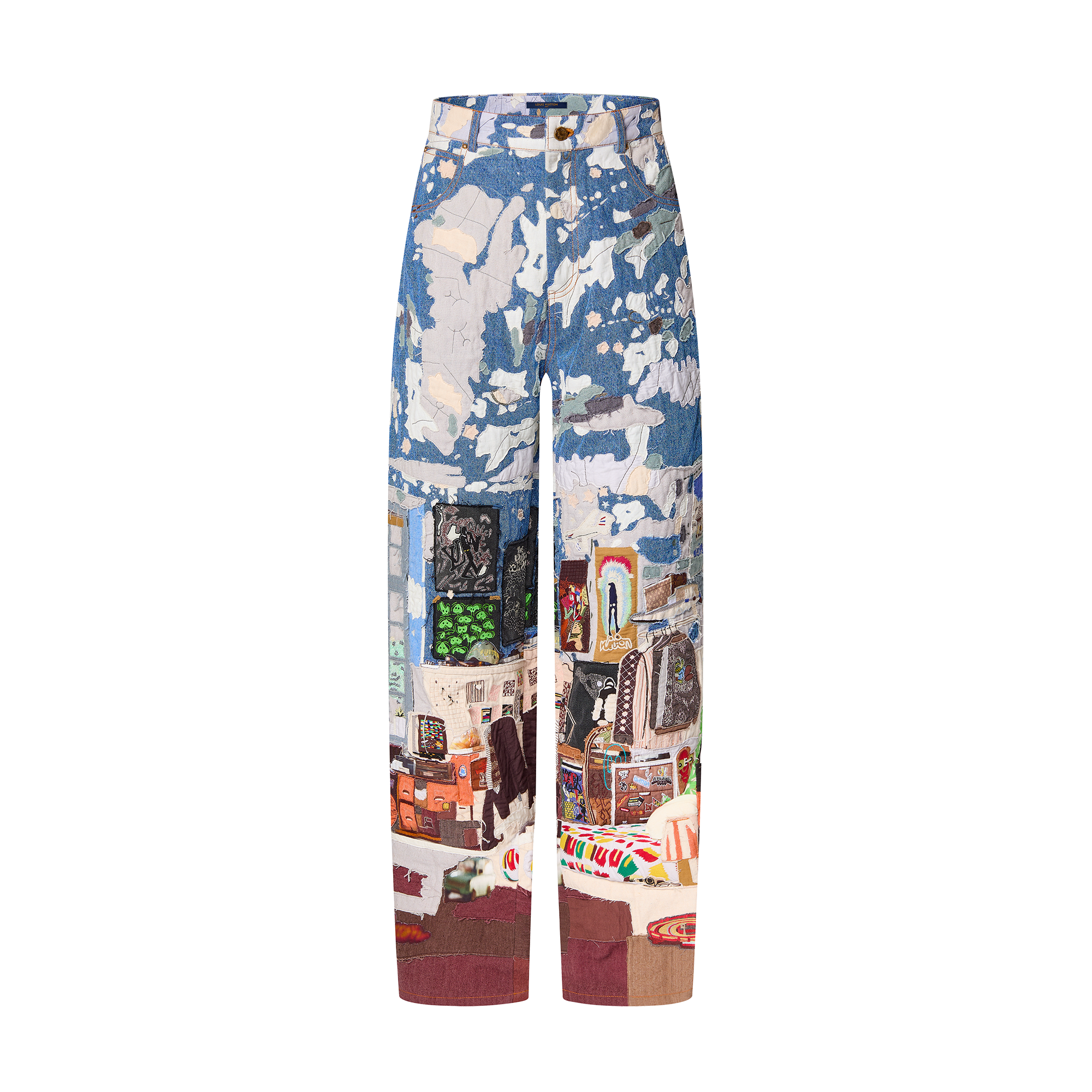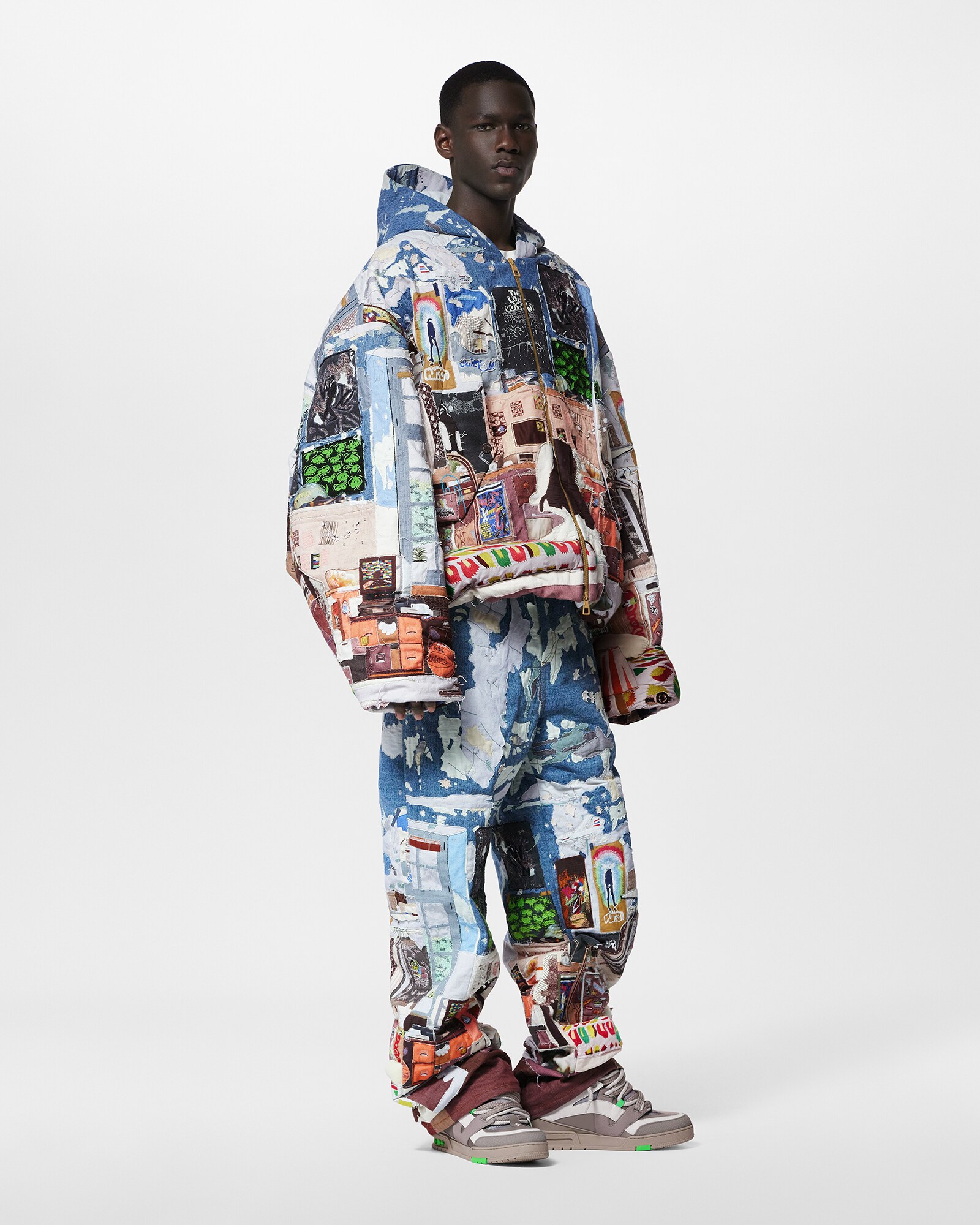 Esta jaqueta com capuz feita sob encomenda traz um dos temas do desfile Fall-Winter 23: uma homenagem divertida ao quarto adolescente. O patchwork meticulosamente bordado traz ricos detalhes, incluindo assinaturas e referências de coleções passadas. Sua modelagem aconchegante combina perfeitamente com a calça de mesmo modelo para criar um look icônico.