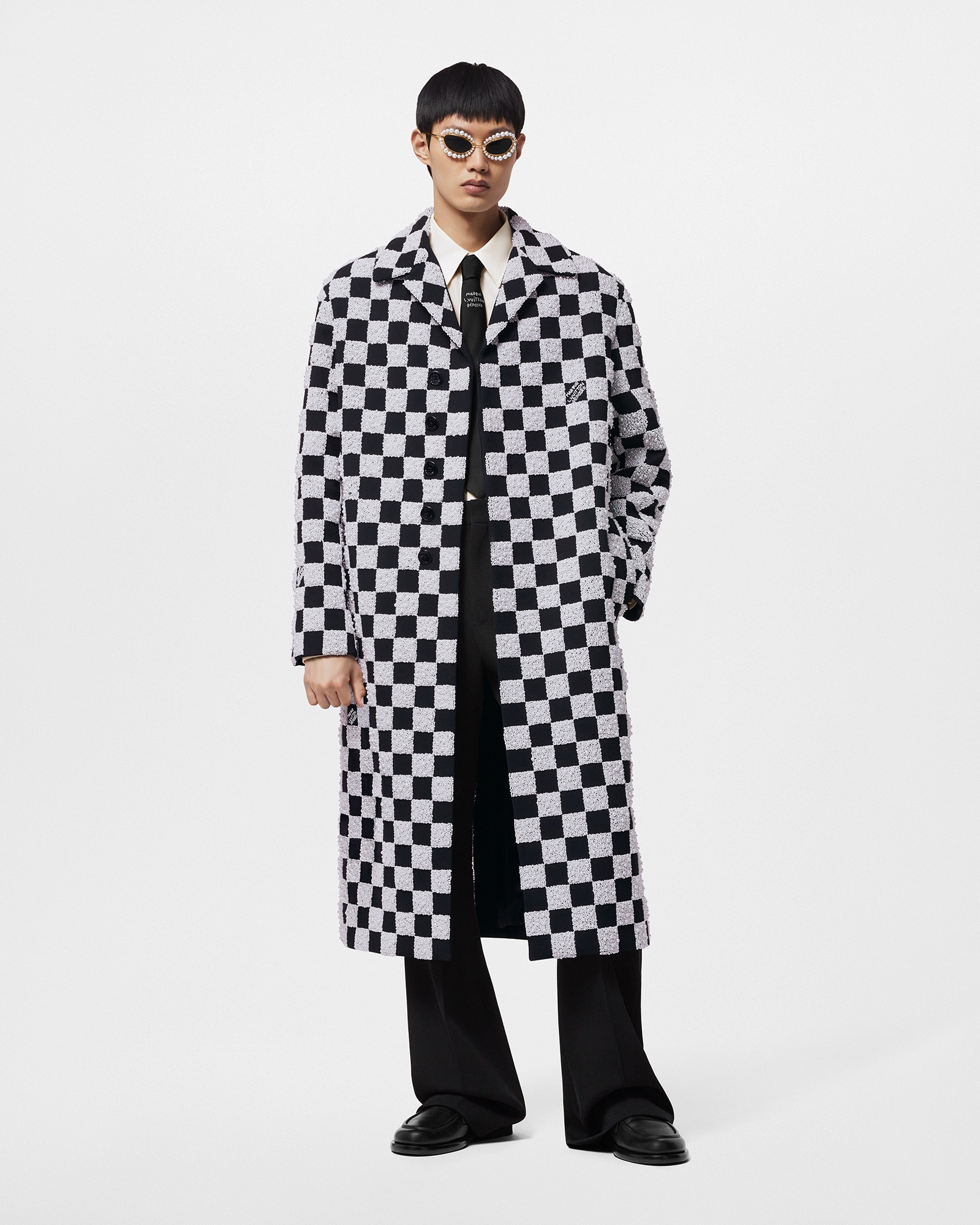 Do desfile Spring-Summer 24, este casaco exclusivo feito sob encomenda é confeccionado em lã dupla face com o padrão Damier todo bordado à mão com pérolas. Assinaturas "Marque L. Vuitton déposée" discretas, incorporadas em alguns quadrados, valorizam ainda mais este modelo impactante da passarela, que apresenta a inspiração dândi da coleção.