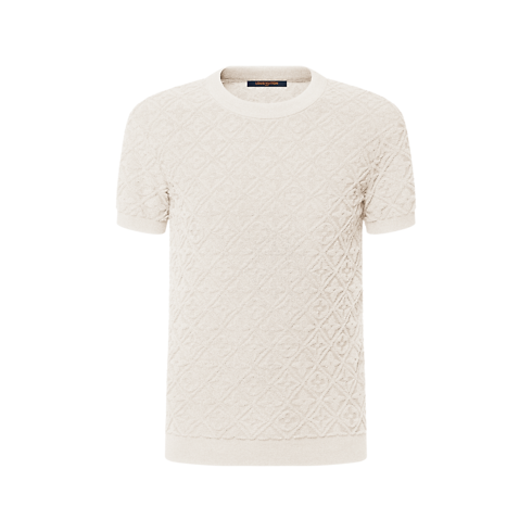 Reinventada em um estilo descontraído com um acabamento atoalhado, esta blusa é confeccionada em mescla macia de algodão e lã. O modelo é discretamente assinado com as icônicas Flores do Monogram da Maison em relevo e complementado com uma gola redonda, mangas curtas e bainhas com ribana esportiva.