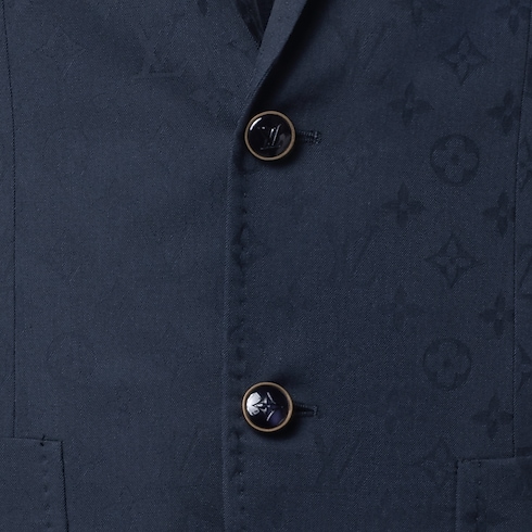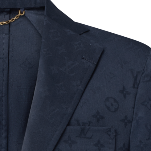Este blazer Napolitana de alfaiataria com abotoamento simples é leve, confortável e elegante. O atemporal tecido de lã azul navy é valorizado por uma padronagem Monogram em jacquard tom sobre tom, criando um contraste sutil entre acabamentos matte e brilhantes. Acompanhado da calça com cordão do conjunto, compõe um look refinado, perfeito tanto para ocasiões formais quanto casuais, seja com uma camisa no mesmo estilo ou com uma malha leve para um visual clean.