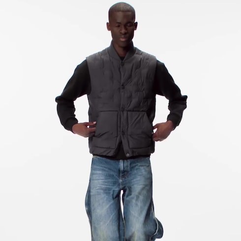 Este colete aconchegante em tecido tecnológico oferece uma elegante camada monocromática para os dias mais frios. Ele é levemente acolchoado e matelassado, recoberto pelo padrão LV Monogram bordado com linha no mesmo tom. Totalmente forrada, a peça tem gola canelada macia, bolsos canguru e fecho com botão de pressão.