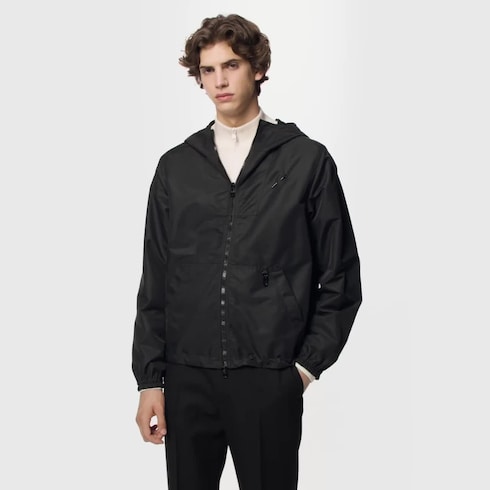 Confeccionada em tecido tecnológico impermeável, esta elegante jaqueta windbreaker reversível é, no lado fosco e liso, decorada com um mosquetão e um pino icônico no peito e, no verso, traz um jacquard Monogram no mesmo tom. Esta peça versátil é fácil de usar e combinar, perfeita para qualquer guarda-roupa.