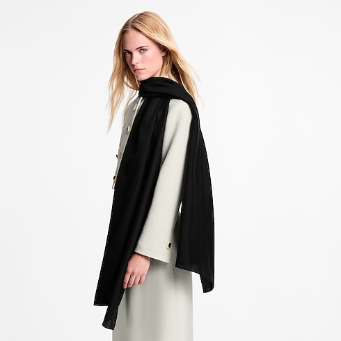 The creative design of the LV Monogram Shadow stole offers an original variation on a classic House signature. Styled in ultra-fluid silk, it features a tone-on-tone jacquard pattern of Monogram Flowers and Initials with a subtle, intriguing shadow effect. This sophisticated stole is ideal for festive occasions, enhancing the most elegant dresses and ensembles.