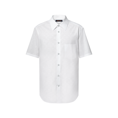 Ideal para dias mais quentes, esta camisa clássica de manga curta é confeccionada em algodão orgânico branco com o Monogram em jacquard tom sobre tom. Um botão superior LV e uma etiqueta com LV e Flores do Monogram na trama decoram a carcela. Esta peça versátil pode ser combinada com um terno Monogram Napolitana para uma composição sofisticada.