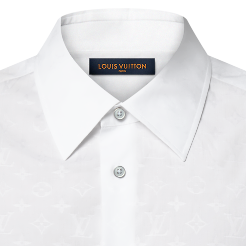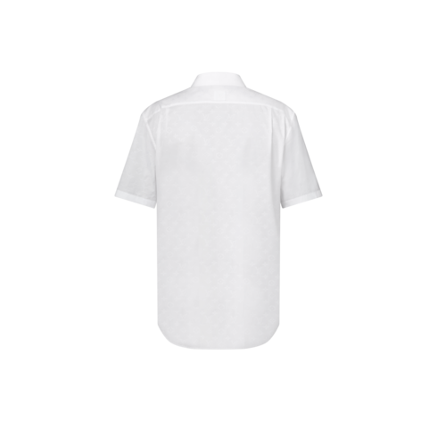 Ideal para dias mais quentes, esta camisa clássica de manga curta é confeccionada em algodão orgânico branco com o Monogram em jacquard tom sobre tom. Um botão superior LV e uma etiqueta com LV e Flores do Monogram na trama decoram a carcela. Esta peça versátil pode ser combinada com um terno Monogram Napolitana para uma composição sofisticada.