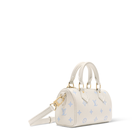 A icônica bolsa Nano Speedy é reinventada em uma paleta bicolor da estação, combinada ao sofisticado couro Monogram Empreinte, assinatura da Maison. Perfeita para o dia ou para a noite, esta edição traz ferragens douradas e oferece múltiplas possibilidades de uso, graças às duas alças e à tira removível. Seu interior espaçoso acomoda itens básicos do dia a dia, incluindo uma carteira compacta.