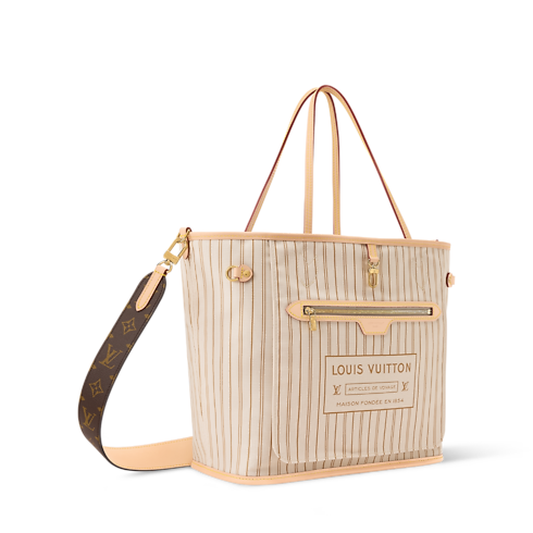Esta edição elegante da bolsa Neverfull Inside Out MM é confeccionada em canvas Monogram e revela, no verso, uma tonalidade areia chic e versátil. O modelo é realçado por uma alça em couro, ferragens douradas e uma etiqueta Louis Vuitton, celebrando a tradição da Maison. Com design espaçoso que acomoda um laptop e itens essenciais do dia a dia, pode ser carregado no ombro ou na mão.