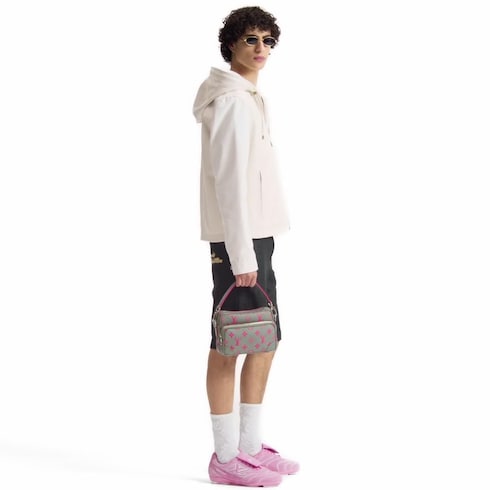 Um clássico da década de 1980 repaginado por Pharrell Williams, a icônica bolsa Nil é confeccionada em canvas Monogram Glow. Este modelo vintage tem um compartimento principal e bolso frontal com zíper. Versátil, pode ser carregada com a alça de mão ou com a alça longa em couro, ambas removíveis. A padronagem colorida lembra as luzes de neon de Miami.