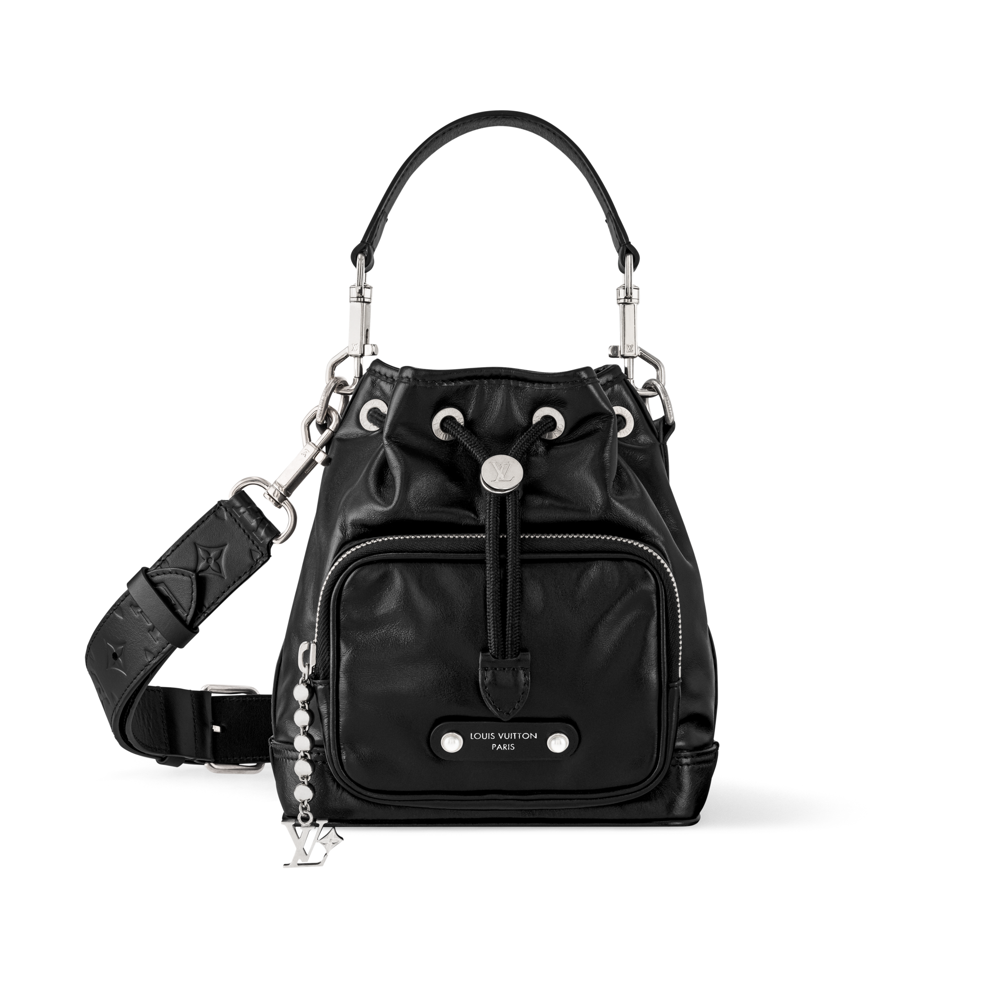 A bolsa Noé Cargo em canvas Monogram com acabamento em couro envelhecido é inspirada na icônica bolsa bucket Noé da Louis Vuitton, criada em 1932 para transportar garrafas de champanhe. Com seu bolso frontal espaçoso e detalhes meticulosos, este modelo presta homenagem à história da Maison, enquanto atende às necessidades contemporâneas. A alça superior e a de ombro, ambas removíveis, oferecem diversas opções de uso.