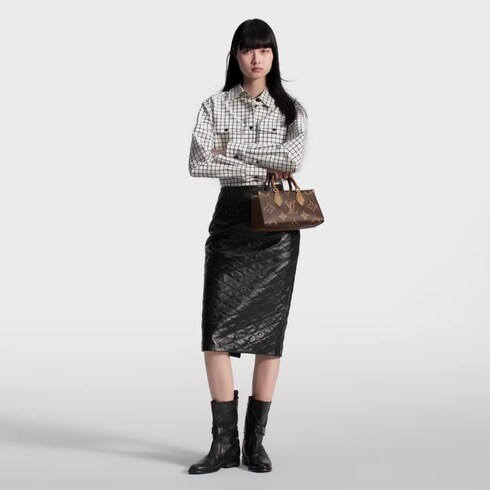 Nesta estação, a Maison interpreta a bolsa tote OnTheGo no formato East-West em um mix moderno de canvas Giant Monogram e Monogram Reverse. Equipada com duas alças Toron e uma alça ampla destacável, esta bolsa com belas proporções pode ser usada de várias formas. Um porta-moedas redondo e removível completa o modelo.