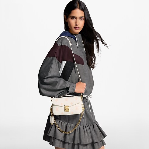 Reimaginada em uma paleta branco leitoso e pêssego, esta edição da bolsa Pochette Métis East West é uma escolha elegante para o fim de semana. Confeccionada no icônico couro Monogram Empreinte, é realçada por ferragens em dourado claro, incluindo o fecho S-lock da Maison. Oferece três compartimentos para acomodar objetos pessoais, além de um bolso externo com zíper.