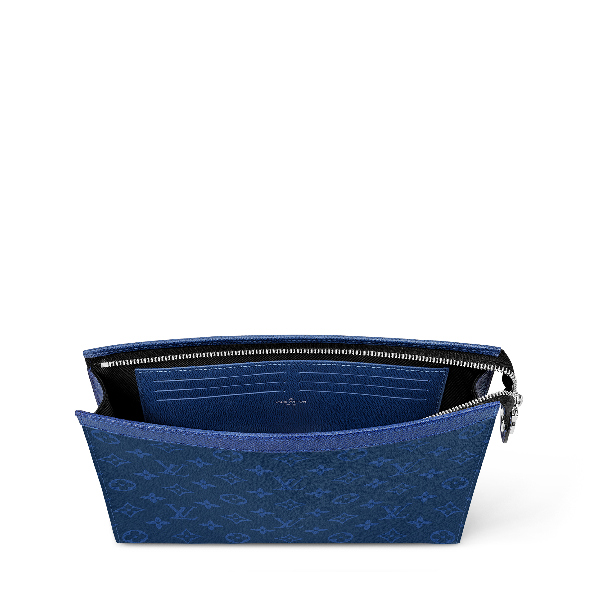 Feita em couro Taiga e canvas Monogram Eclipse, esta edição especial da Pochette Voyage MM integra a coleção Taigarama. Esta elegante bolsa com zíper transporta cartões, papéis e outros itens essenciais. Pode ser colocada dentro de uma mala de viagem ou carregada na mão para um look moderno.