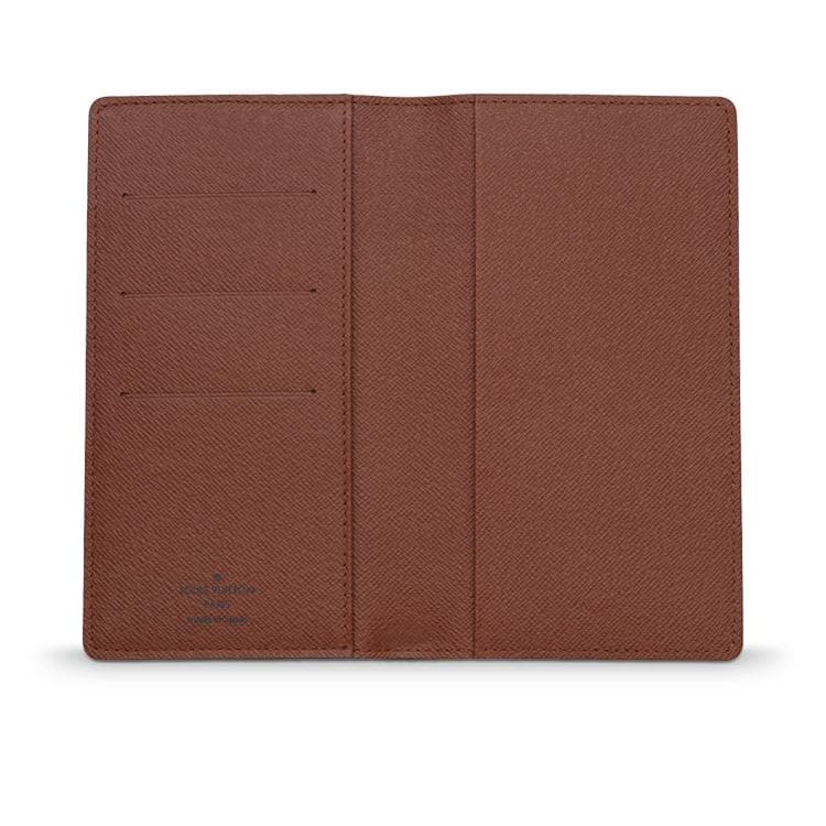 Esta capa para agenda em canvas Monogram possui três espaços para cartões de crédito e um compartimento amplo.