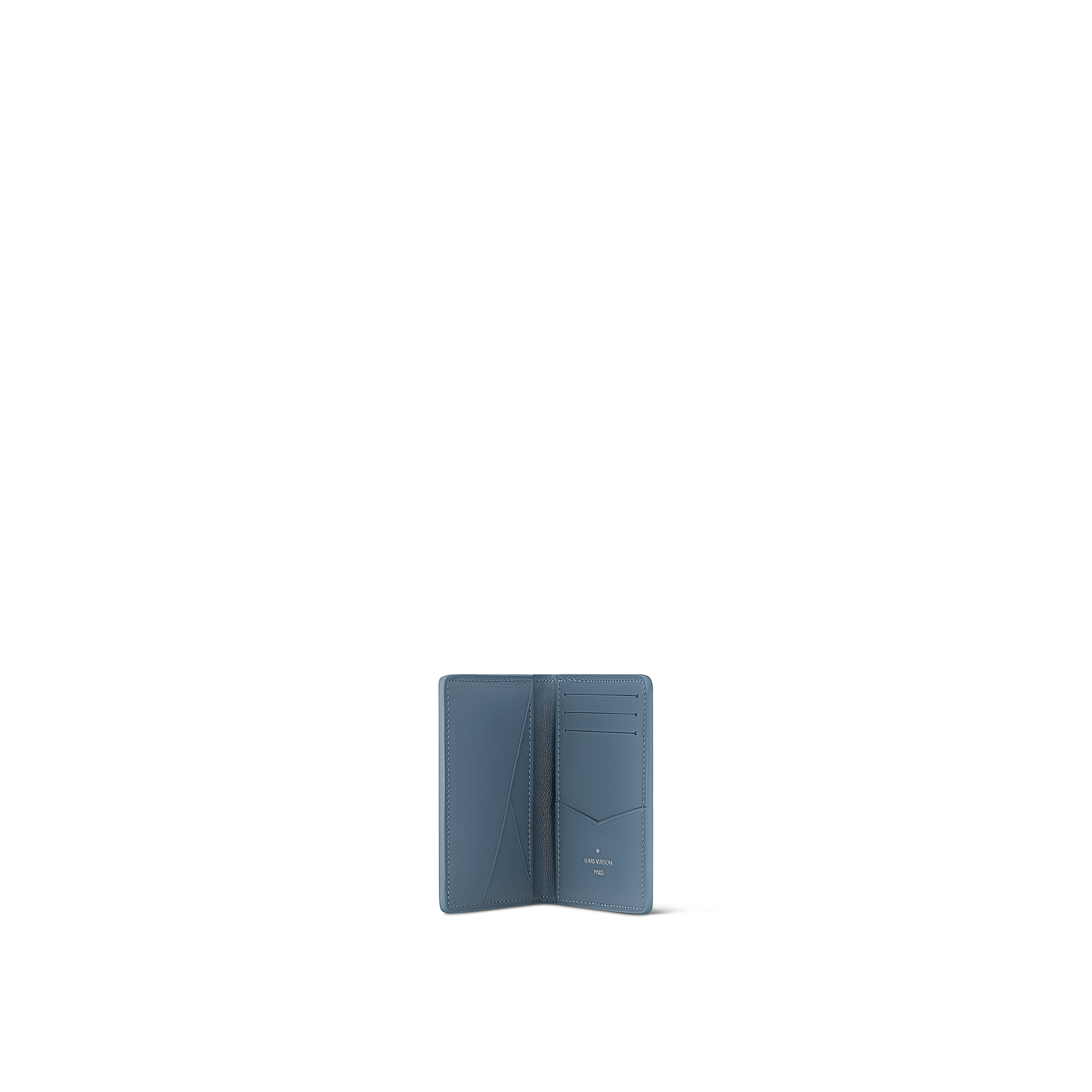 Um couro raro e exótico e uma assinatura preciosa conferem a esta nova versão do organizador de bolso uma aura de luxo. O couro macio de avestruz é tingido com uma tonalidade de azul que destaca as LV Initials em metal prateado. Um acessório prático e moderno para o dia a dia de homens sofisticados.