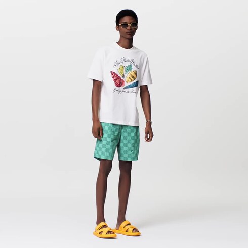 Este calção de banho em tons vibrantes de azul-esverdeado é a cara do verão, com a nova estampa Damier Monogram em destaque. A padronagem xadrez apresenta o Monogram em tamanho micro e a assinatura “Marque L.Vuitton déposée”. Fora da água, esta peça combina perfeitamente com uma camiseta ou camisa com o mesmo padrão para criar um look casual.