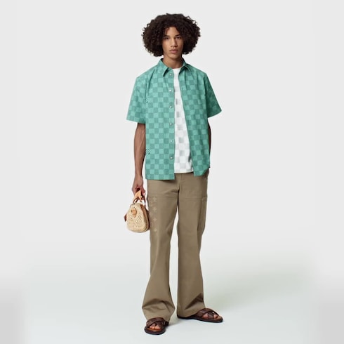 Esta camiseta de algodão em delicados tons de azul-esverdeado apresenta uma versão contemporânea do tradicional xadrez Damier da Maison, com o Monogram em tamanho micro. Uma assinatura “Marque L.Vuitton déposée” bordada no peito completa esta peça, trazendo um toque moderno aos looks do dia a dia.