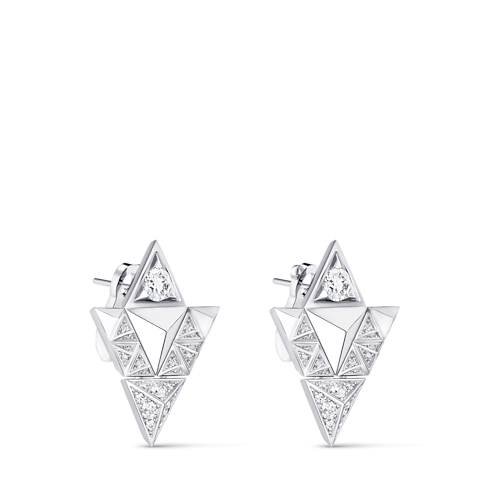 Harmoniously blending heritage and modernity, the Pure V jewelry collection is the ultimate expression of the House’s iconic V signature. The bold design of these 18-karat white gold earrings features an architectural V formed by an array of triangular pyramids, paved with round-shaped diamonds to create a dazzling three-dimensional effect. Strikingly elegant worn alone, it makes a perfect companion to the other fine jewels by Louis Vuitton.
