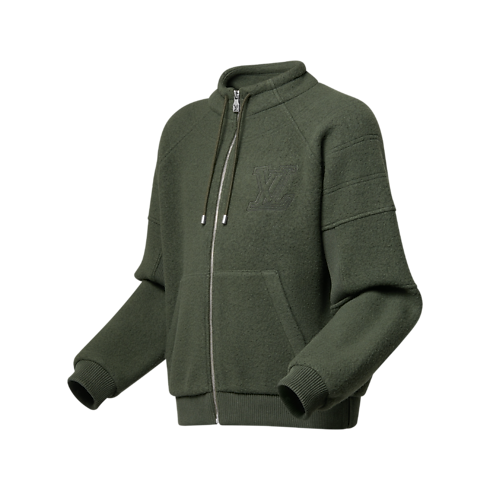 Casual e sofisticada, esta jaqueta inspirada no loungewear é perfeita para viajar. Em lã quente e texturizada na cor verde-oliva, o modelo esportivo apresenta gola alta com cordão e mangas raglan com cotovelos canelados, oferecendo liberdade de movimentos. Os pespontos criam um matelassado chic com um LV bordado no peito. Com a calça no mesmo estilo, cria um conjunto confortável.