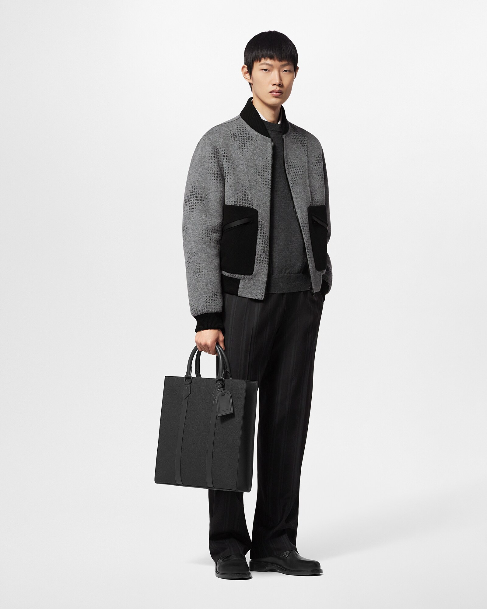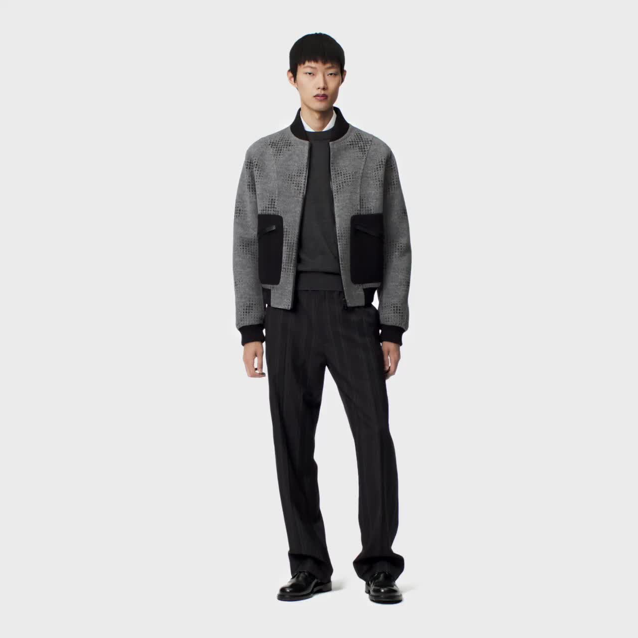 Macia e refinada, esta jaqueta bomber reversível de mescla de lã e seda dupla face traz uma silhueta elegante e casual ao estilo formal. Um dos lados, totalmente em preto atemporal, é assinado com um discreto patch de couro Louis Vuitton. Já o verso traz o jacquard Monogram Celebration em cinza, apresentando pequenos elementos pixelizados que, à distância, formam um Monogram em escala maior. Oferecendo várias opções de estilo, esta peça versátil é perfeita para a meia-estação.