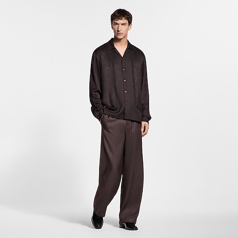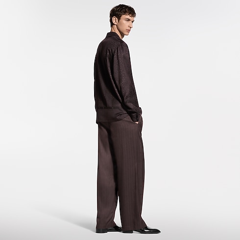 Ricamente decorada como uma echarpe, esta calça pijama fluida em mescla de seda, em tons profundos de marrom, é valorizada por uma padronagem listrada de Flor do Monogram em jacquard, criando um sofisticado jogo de texturas. A silhueta solta e relaxada conta com um cós elástico confortável, finalizado com uma etiqueta LV na trama. Combine com uma camisa coordenada para um conjunto de noite chic e aconchegante.