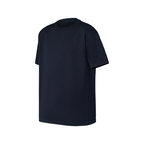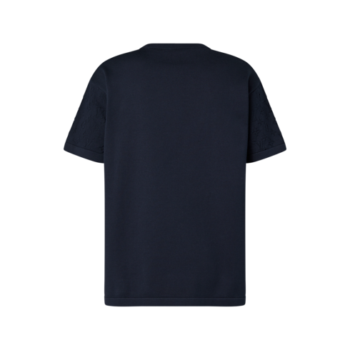 Esta elegante camiseta de manga curta em malha de algodão orgânico é atemporal. Ela se destaca pelo padrão Monogram em jacquard em tom sobre tom nas mangas com um ligeiro efeito de relevo. Disponível em preto chic e profundo, essa peça essencial é perfeita para completar looks elegantes e casuais.