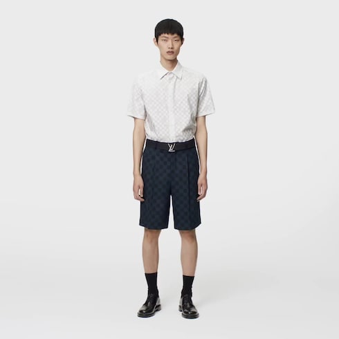 Esta camisa branca de mangas curtas é perfeita para ser usada nos dias mais quentes. Confeccionada em popeline de algodão orgânico com um leve brilho, traz o padrão Wavy Damier e discretos símbolos LV, que complementam a releitura moderna da histórica assinatura da Maison. Esta camisa combina perfeitamente com peças de alfaiataria com o mesmo padrão e também valoriza peças lisas.