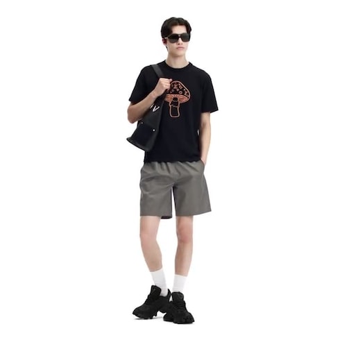 Confeccionada em algodão certificado em um fino tricô, esta camiseta preta impecável confere um toque gráfico de assinatura aos visuais casuais. Inspirada na estadia desta coleção no interior britânico, apresenta um símbolo de cogumelo lúdico em intársia, incorporando assinaturas Monogram na parte frontal. Uma etiqueta na trama Marque L.Vuitton Déposée nas costas adiciona um acabamento elegante e sofisticado.
